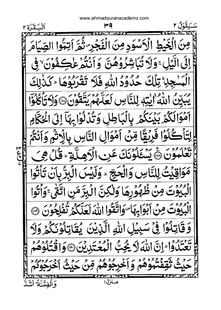 This part of the Quran introduces the rules of fasting and the importance of the blessed month of Ramadan. Fasting is a spiritual discipline meant to develop piety and control.
