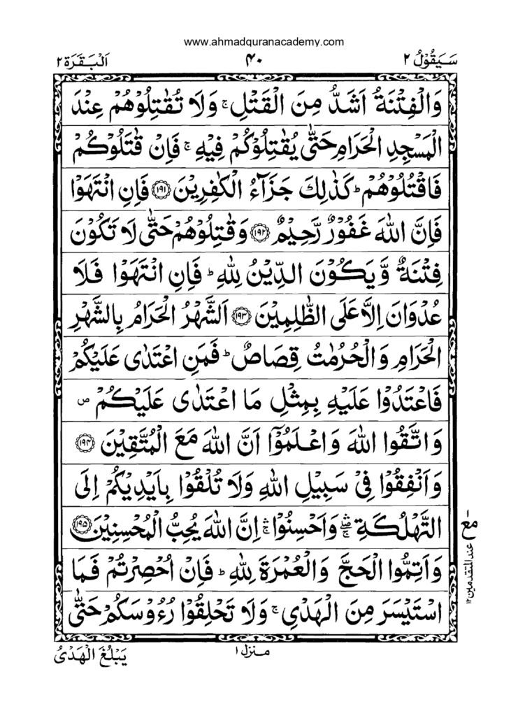 Quran Para 2, titled “Sayakool”, begins from Surah Al-Baqarah verse 142 and continues up to verse 252. This Juz explores the change of Qiblah, the significance of obedience to Allah, and continues the detailed discussions on laws, spirituality, and past nations.
