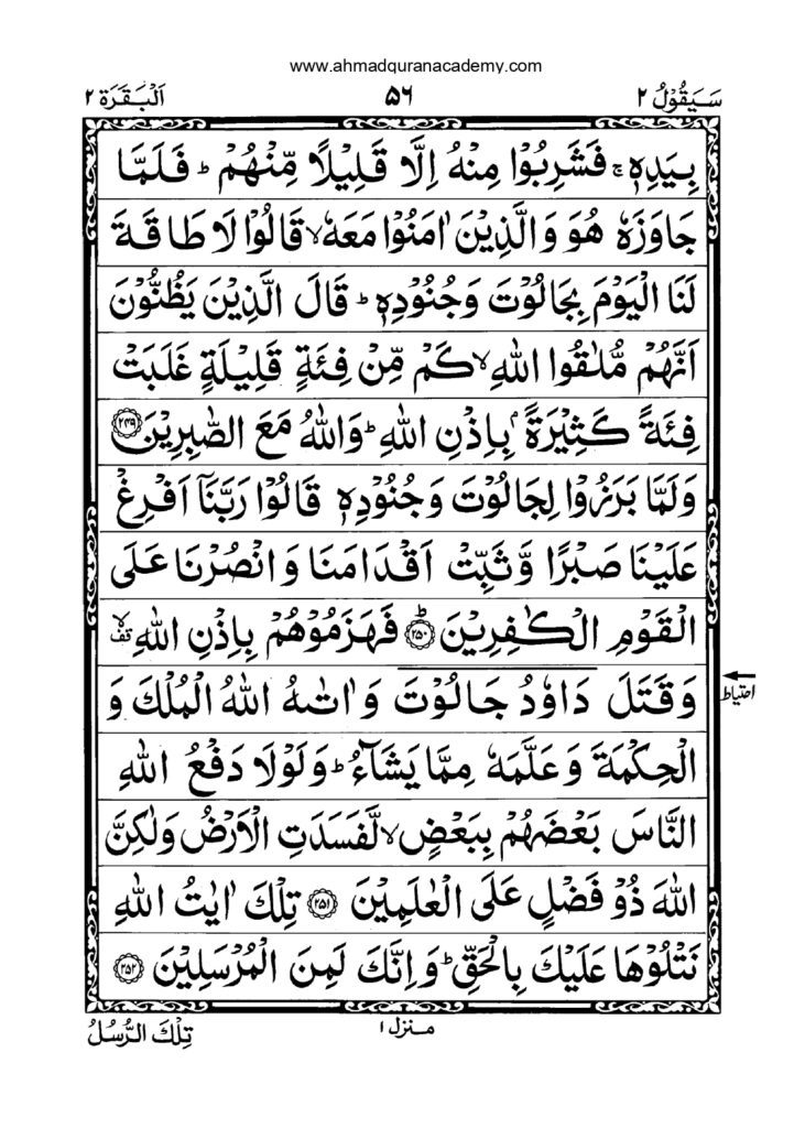 This Para includes the story of Prophet Ibrahim (A.S.) and his complete submission to Allah, as well as the story of Talut (Saul) and Jalut (Goliath), emphasizing that faith is more powerful than physical strength.