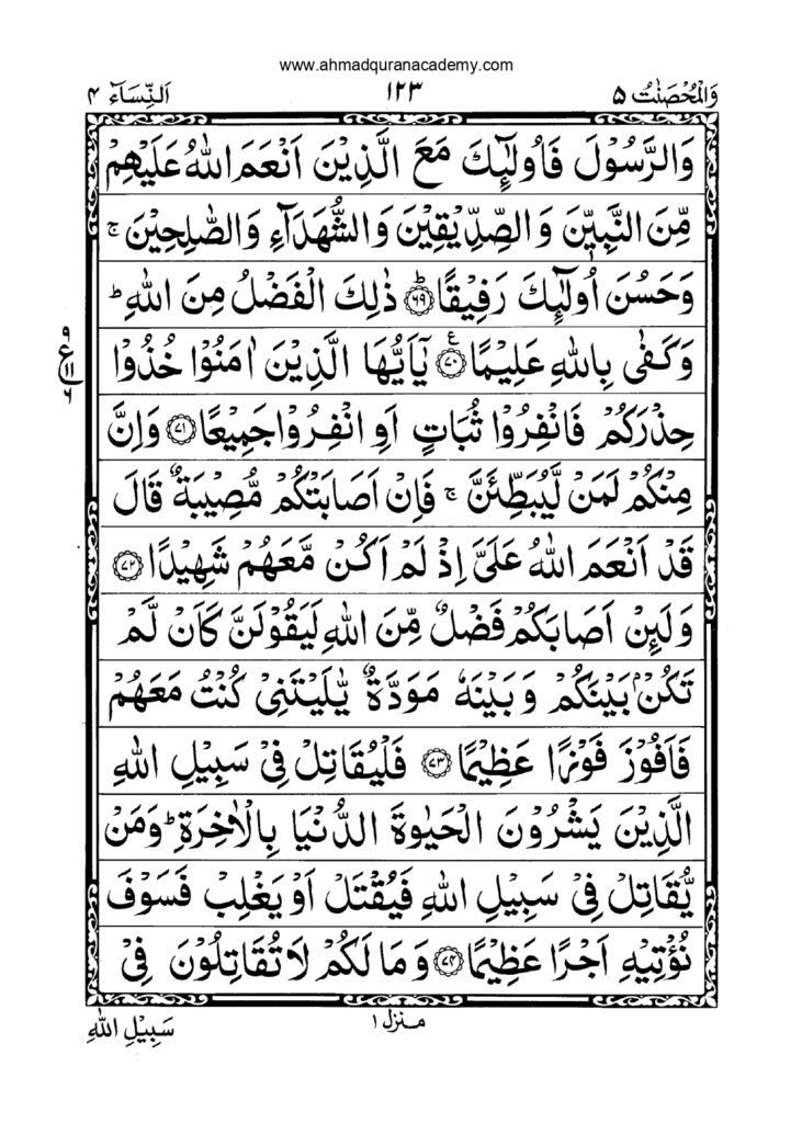 Para 5 continues with Surah An-Nisa (The Women), which focuses on laws regarding women’s rights, justice, and the structure of a just Islamic society.